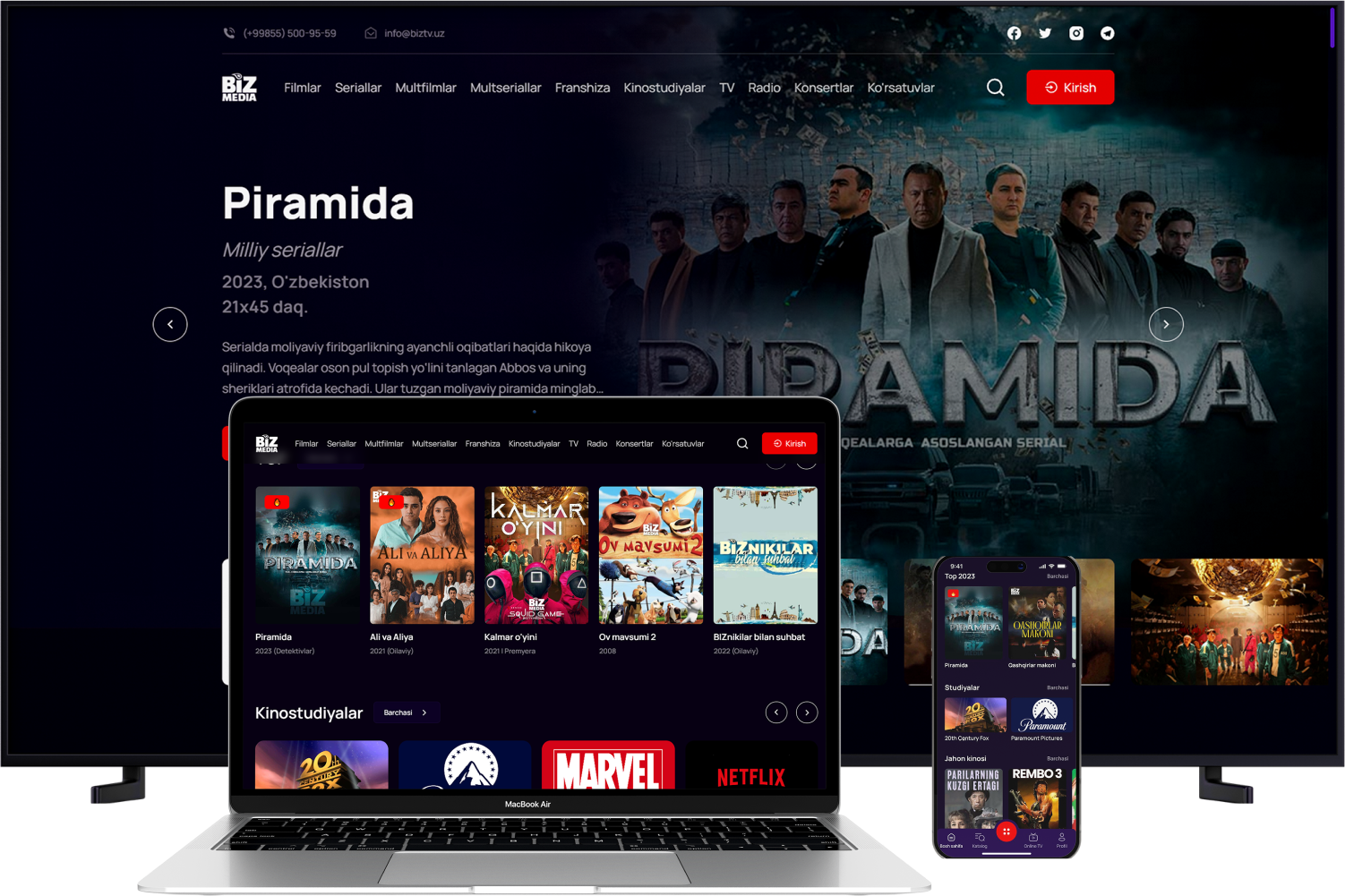 Изготовление и размещение рекламы на ТВ, радио, медиа платформах OnTV и BiZ MEDIA на территории России, Узбекистана, Казахстана.